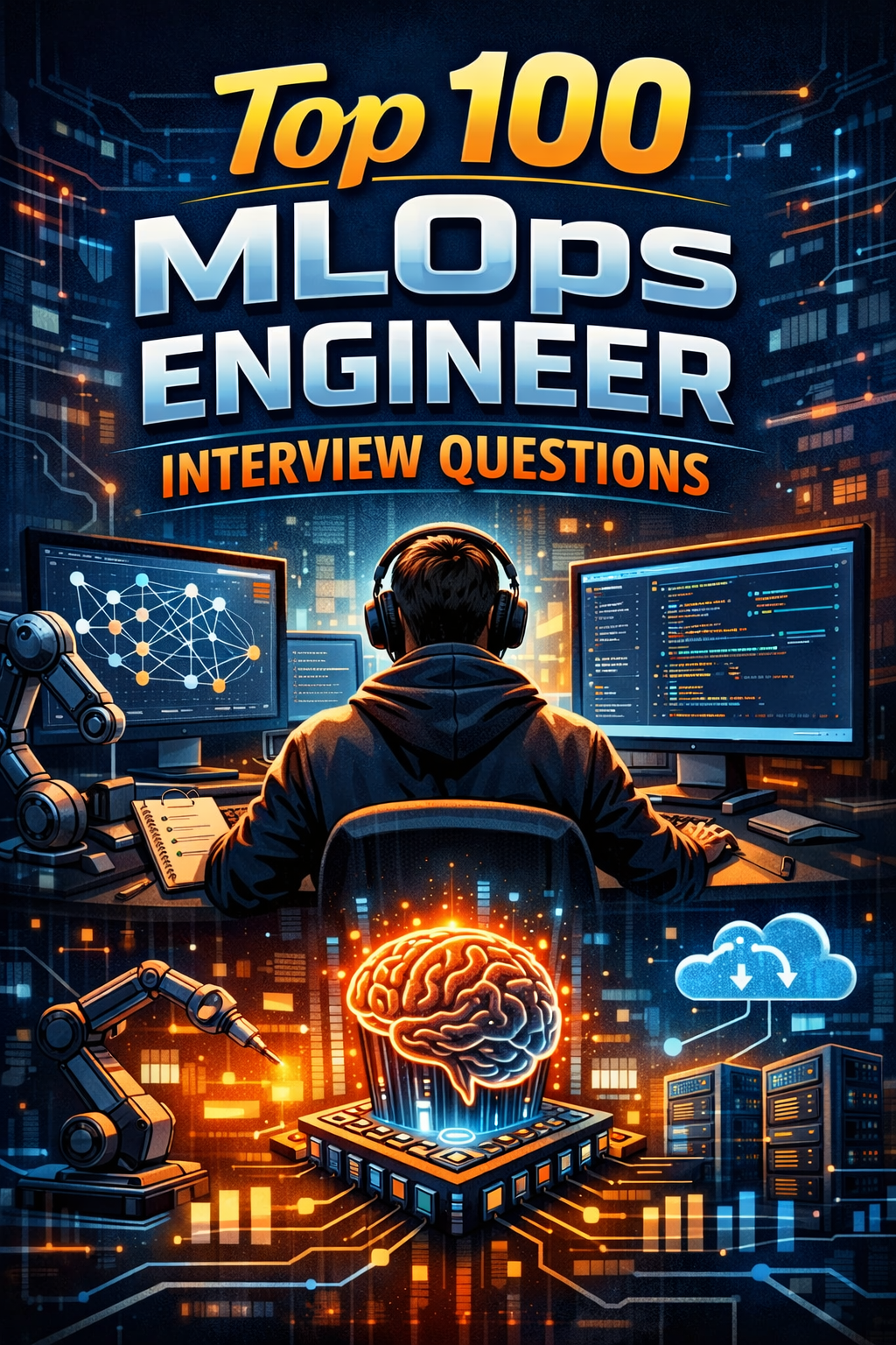 MLOps Engineer Interview Questions, MLOps Interview Preparation PDF, MLOps Beginner Guide, Machine Learning Operations Book, Top 100 MLOps Questions, Model Drift and Monitoring, Feature Store MLOps, Docker Kubernetes MLOps, CI/CD for Machine Learning, Production ML Deployment